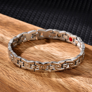 Pulseira Magnética Vintage para Homens em Aço Inoxidável Prata Bio Bracelet para Homens